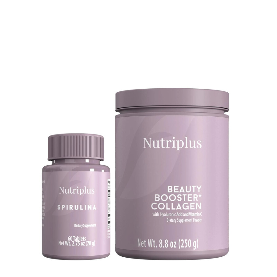 This bundle contains: – Nutriplus Spirulina – 60 tablets – Nutriplus Beauty Booster Collagen